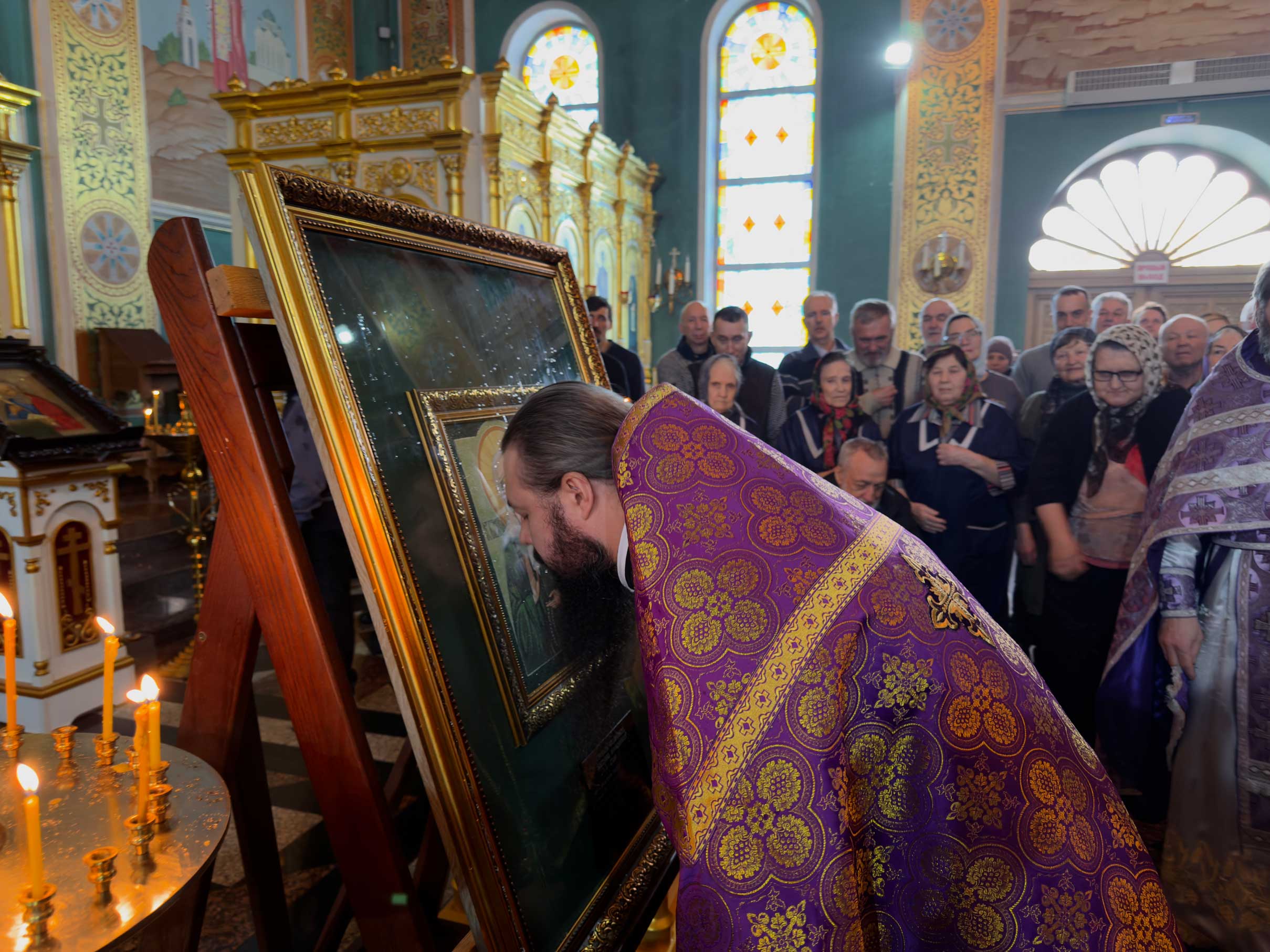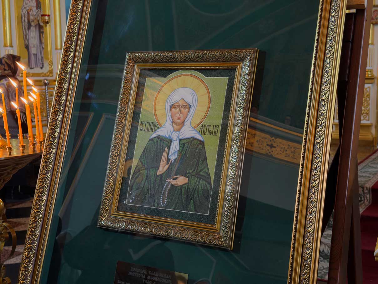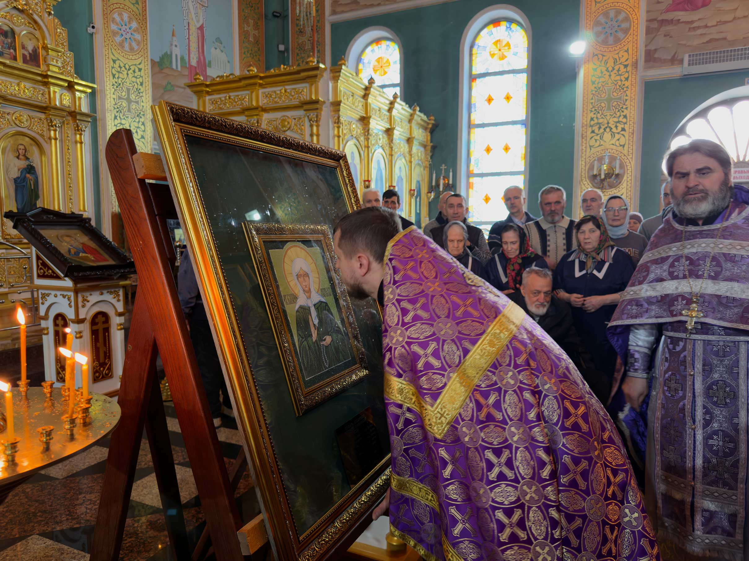 В завершении Литургии было совершено славление перед иконой почитаемой в нашей области святой старицы Матроны Московской.