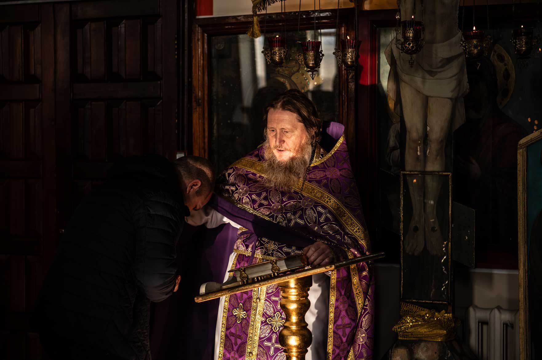 В завершении богослужения было совершено славление и поклонение Кресту Христову, после чего с пастырским словом к собравшимся обратился отец Геннадий. В своей проповеди он подчеркнул важность крестоношения с верой и смирением, напоминая, что Крест — это не только символ страдания, но и знамение победы и спасения.