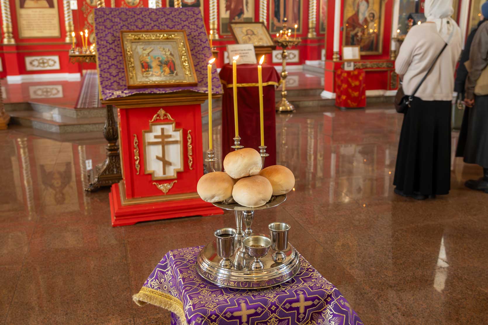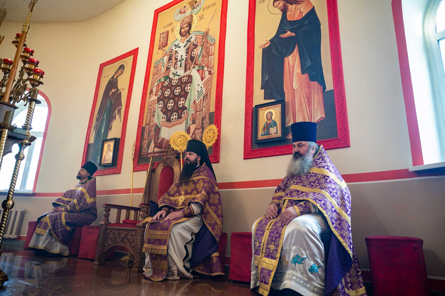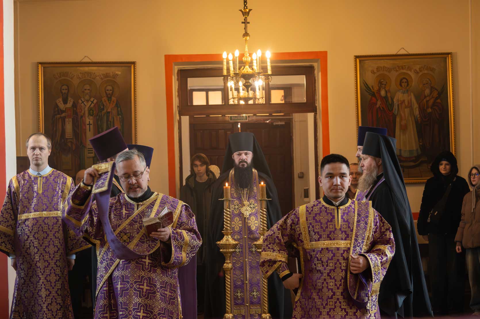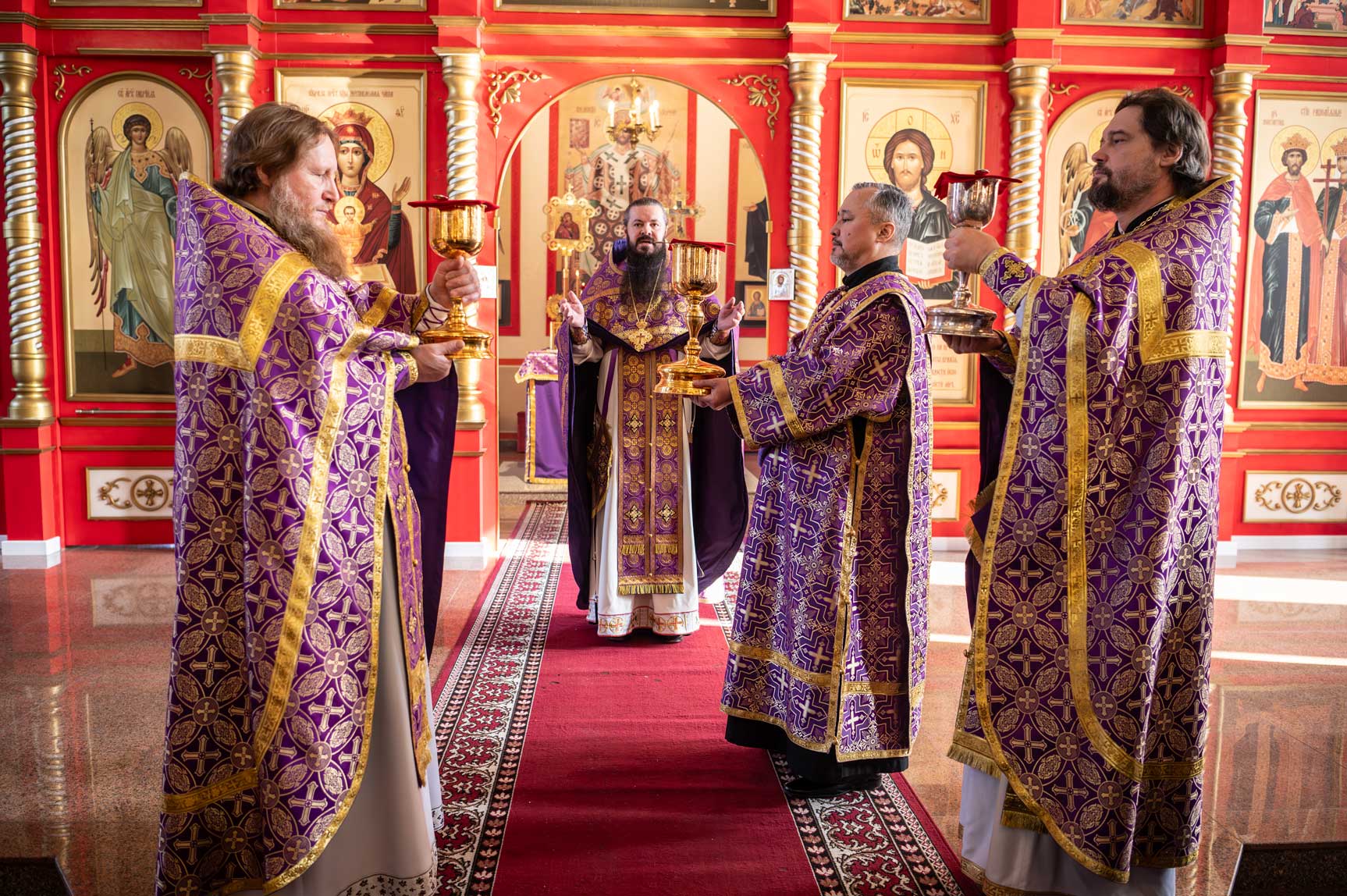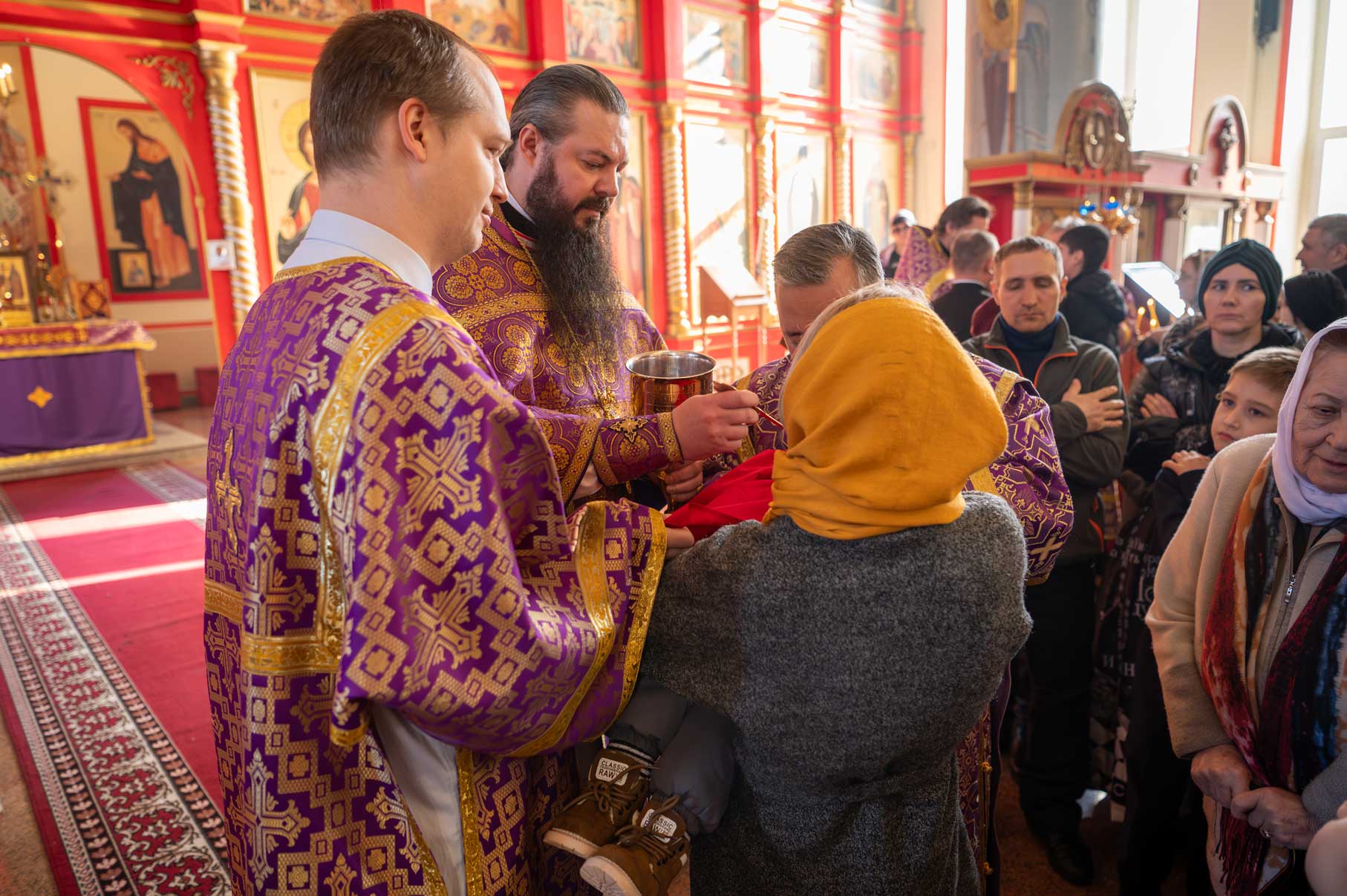 Накануне, в субботу, было совершено Всенощное бдение с особым чином выноса Креста Господня из алтаря в центр храма. Этот чин напоминает о возвышении Креста Христова над миром и Его искупительной жертве. Верующие молитвенно преклонились перед Крестом.